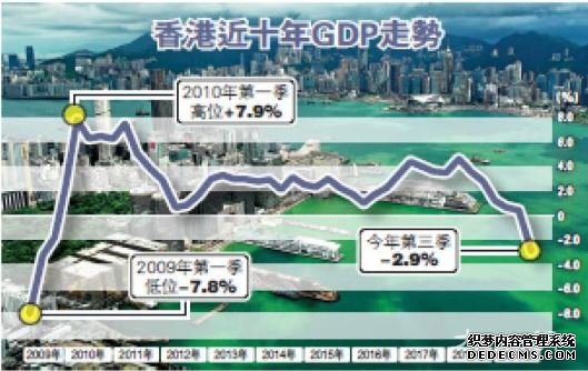 由於香港首三季经济已录得百分之零点七跌幅,预期全年经济见红、下跌百分之一至二的可能性存在,为零九年经济收缩约百分之二点五以来最差,难以实现当局预期零至百分之一的增长目标。社会纷乱已持续五个月,香港经济受到伤害正在不断深化,企业减少以至搁置投资,不利打造创新科技等新增长点,更影响整体就业市场。