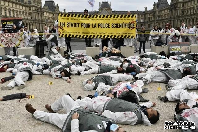 其实,这些人是巴黎的法医调查人员,他们看到隔壁武装警察同事们在罢工游行后拿到了想要的工作福利,于是再也坐不住了,纷纷走上街为自己争取权益,希望自己能得到更多的资源和地位。