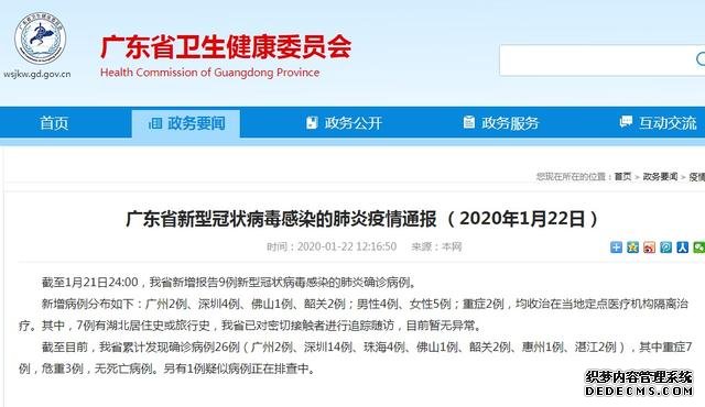 截至21日24:00,广东省新增报告9例新型冠状病毒感染的肺炎确诊病例。