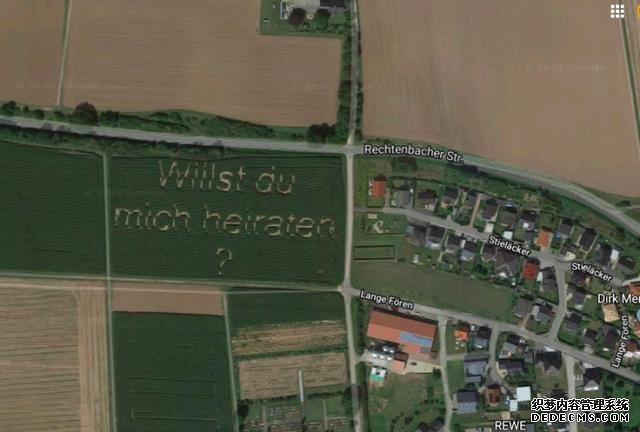 据了解,当时,Schwarz为了向未婚妻求婚在德国中部的Huettenberg社区通过使用玉米种植机在田地里留下了“你愿意嫁给我吗?(Willst du mich heiraten?)”这句感人的话。为了让女友看到,Schwarz让女友操控无人机飞过这片田地。为了让女友不起疑心,Schwarz编造了一个让其操控无人机的理由,即自己在田里看到了野猪所以需要借助无人机查看一下。而结局大家也已经知道了--Schwarz女友看到信息并答应了男友的求婚。