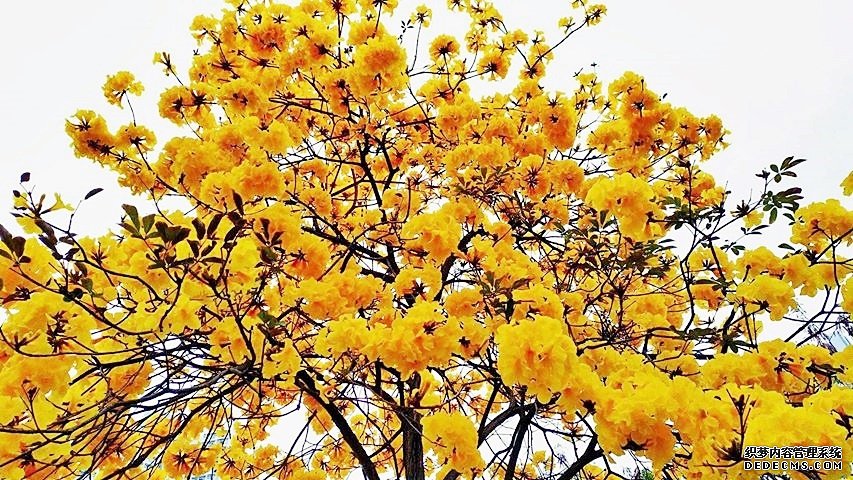 黄花风铃木在春天开花,但花期非常短暂,最多只有一至两星期,错过了便要再等下一个开花季节。