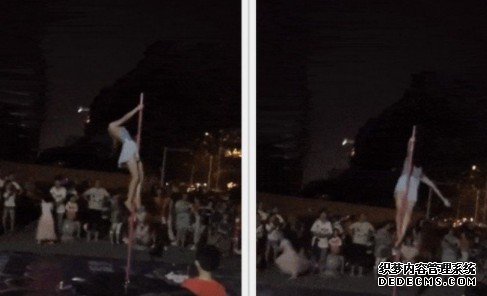 网传一段视频显示,事发在上周四(25日)晚,江苏省南通市港闸区北城中学前有舞蹈机构来招生,一名身材火辣辣的女子大跳钢管舞,引来群众围观。学校保安表示,这是一舞蹈机构来招生,当时来了八九个人,跳了健身操,还跳了钢管舞,「喊他们走,没喊得走。晚上6点多,跳了半个小时。」